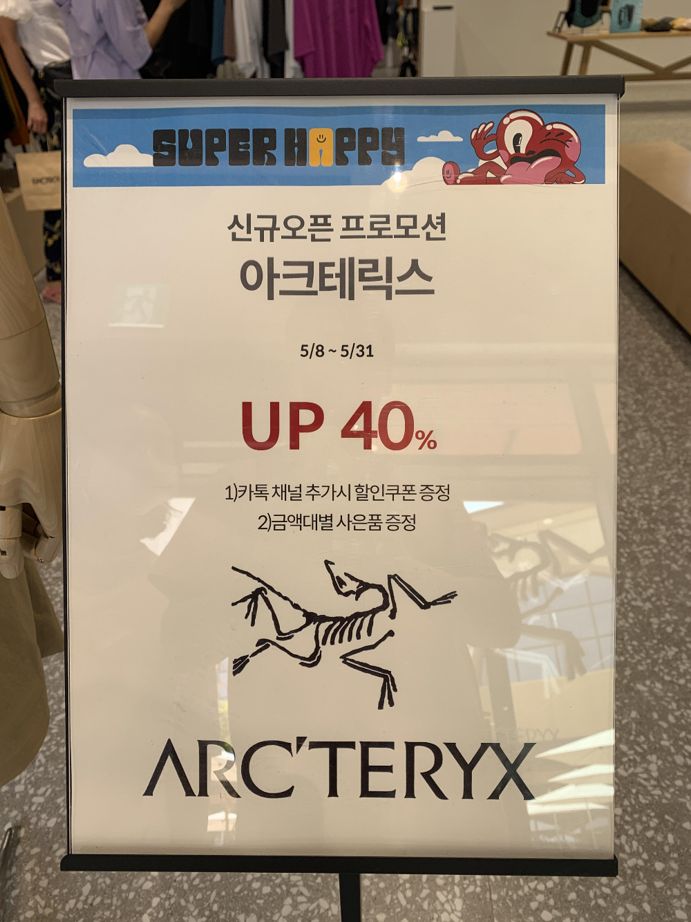 이 광고판을 보면 아크테릭스 40% 할인이다!! 하고 뛰어오겠지만,