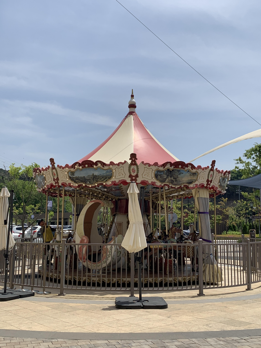 여기 야외에 회전목마와 초대형 놀이기구가 있습니다.