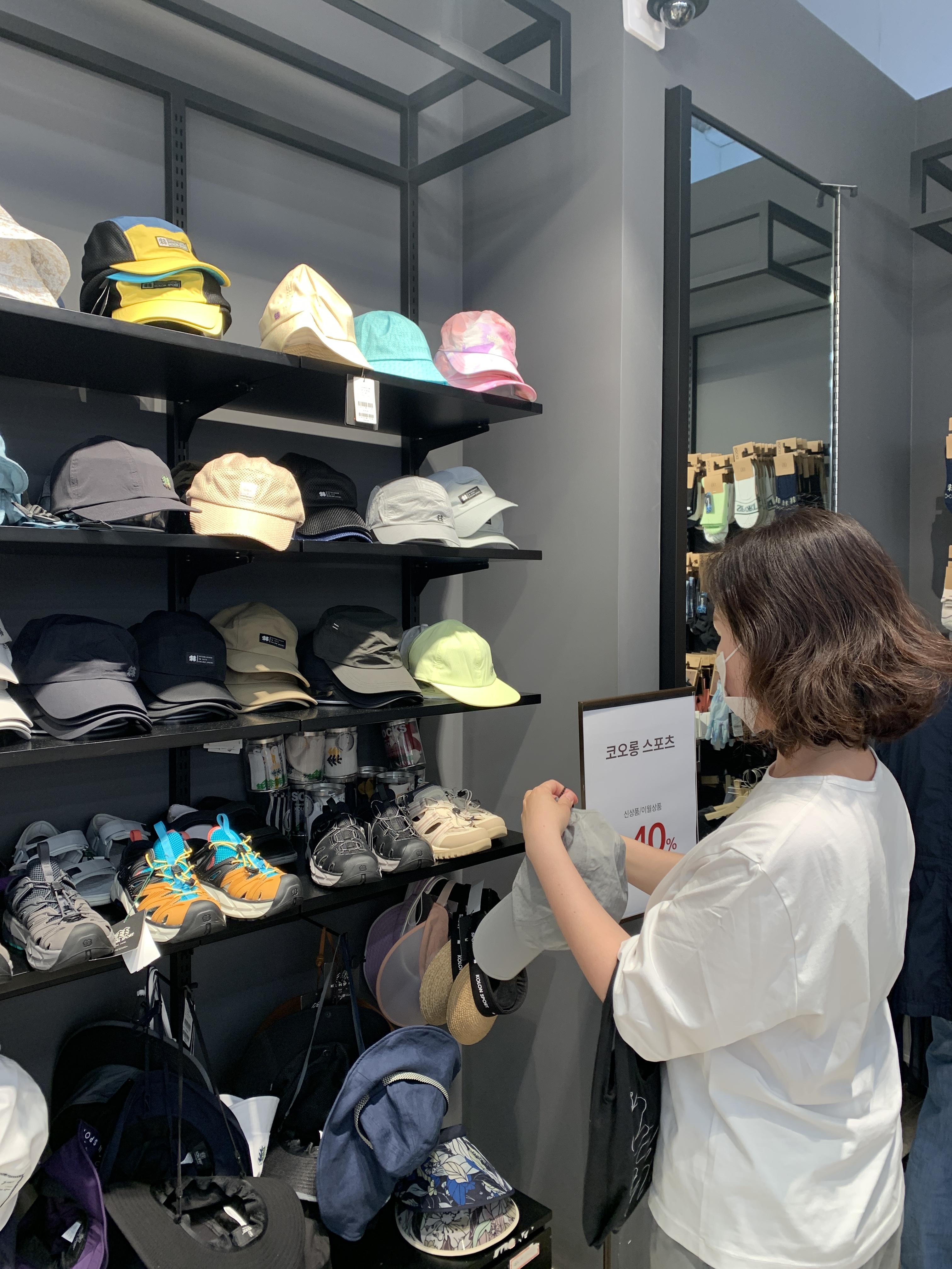 착용해 보려고 사이즈를 기다리는 동안 모자도 보고 다른 상품들도 구경했어요.