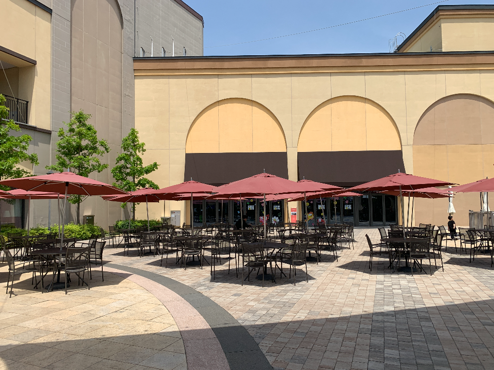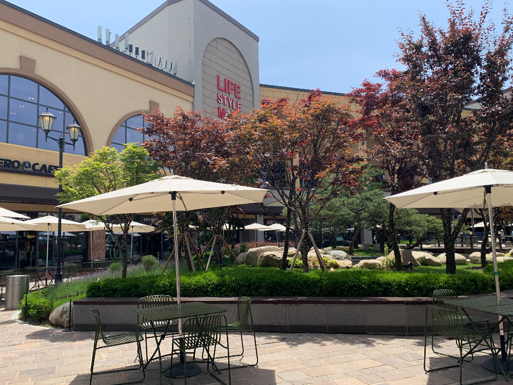아울렛 내부와 외부의 다양한 쉴 공간